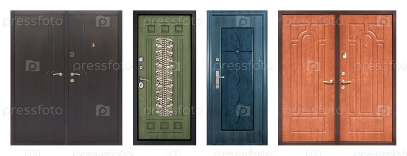 Набор моделей входных металлических дверей, изолированных на белом фоне