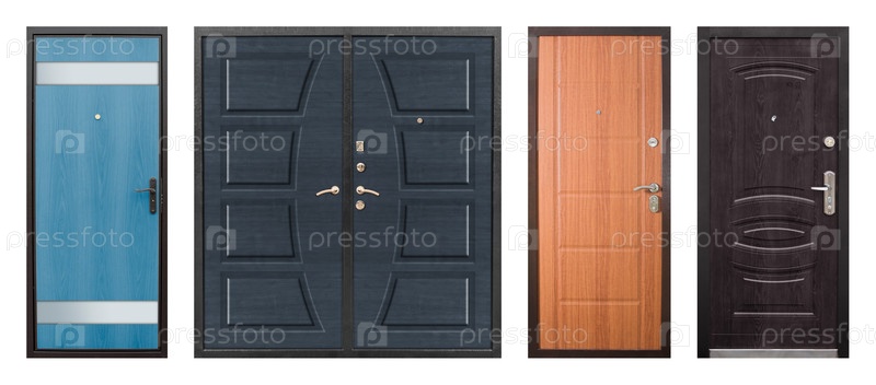 Набор моделей входных металлических дверей, изолированных на белом фоне