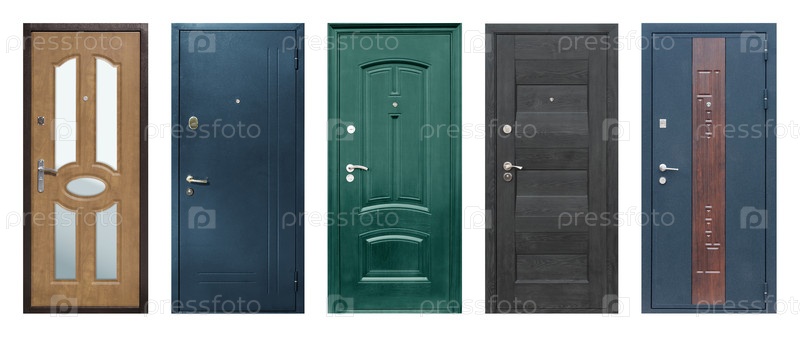 Набор моделей входных металлических дверей, изолированных на белом фоне