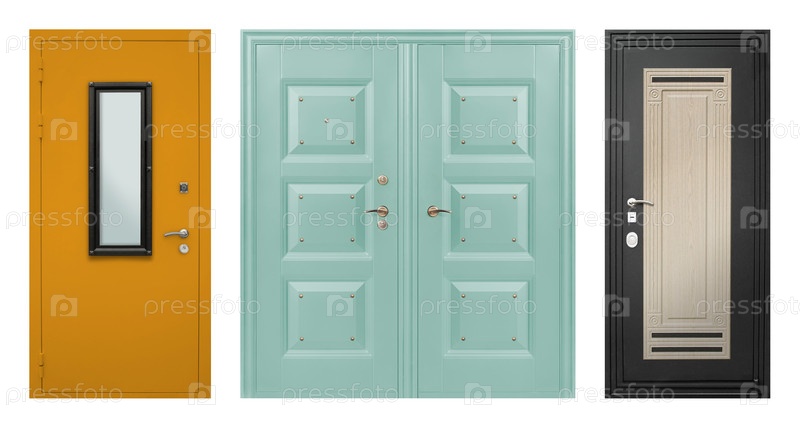 Набор моделей входных металлических дверей, изолированных на белом фоне