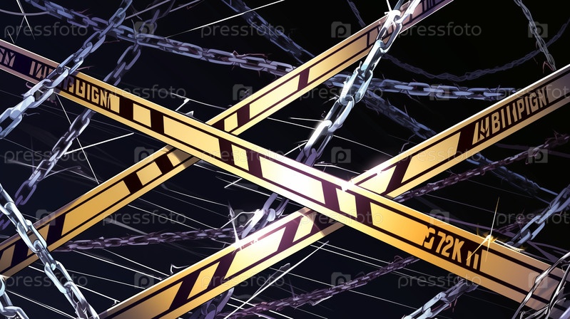 Цепи и предупреждающие ленты на заднем плане