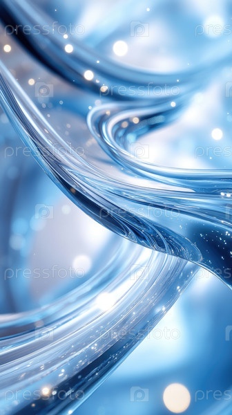 Мягкие синие и белые оттенки плавно смешиваются, демонстрируя абстрактные линии и нежные световые пятна боке. Эта композиция вызывает мирную и элегантную атмосферу, идеально подходящую для различных творческих проектов