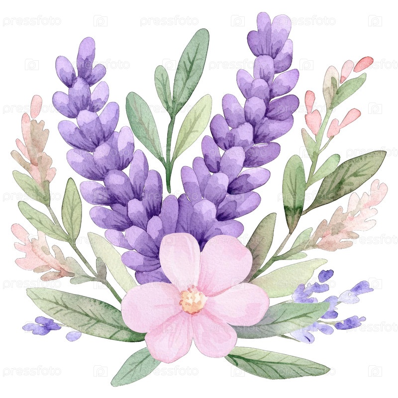 Красивая акварельная цветочная композиция с лавандовыми и розовыми цветами