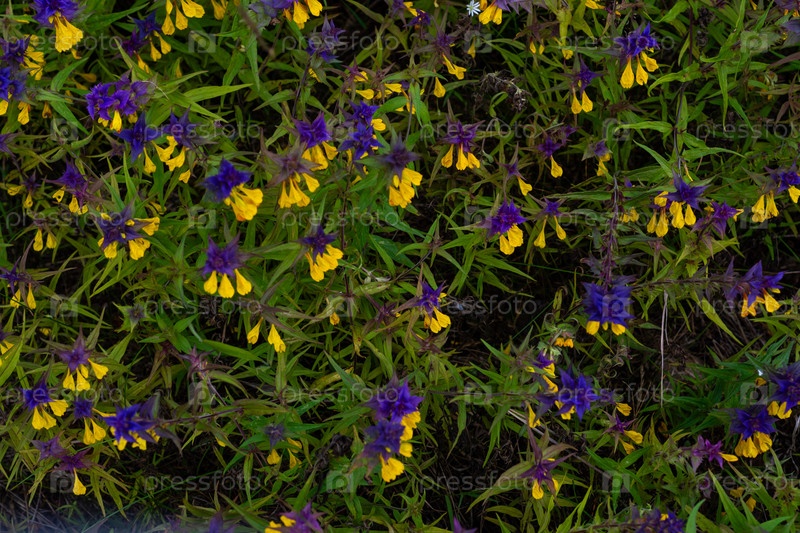 Марьянник дубравный, или Иван-да-марья (лат. Melampyrum nemorosum) на фоне разнотравья на летнем лугу