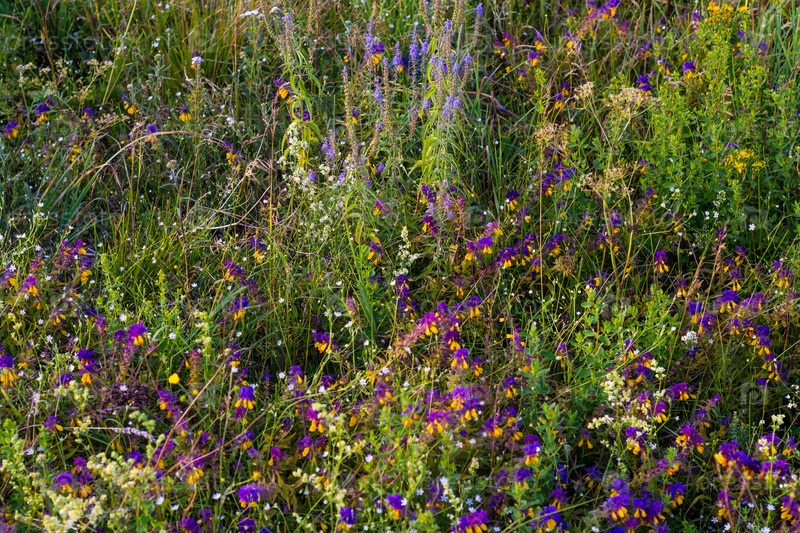 Марьянник дубравный, или Иван-да-марья (лат. Melampyrum nemorosum) на фоне разнотравья на летнем лугу