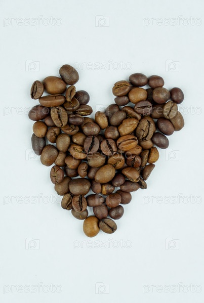 Сердце из кофейных зерен на белом фоне
