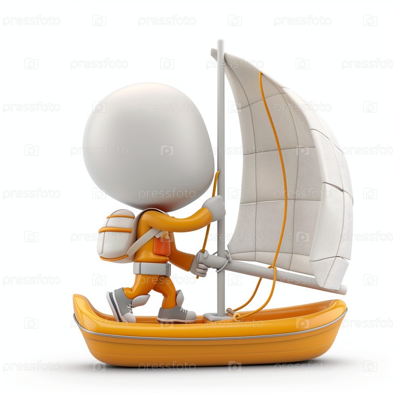 Стикмен плывет на яхте, изолированный на белом фоне