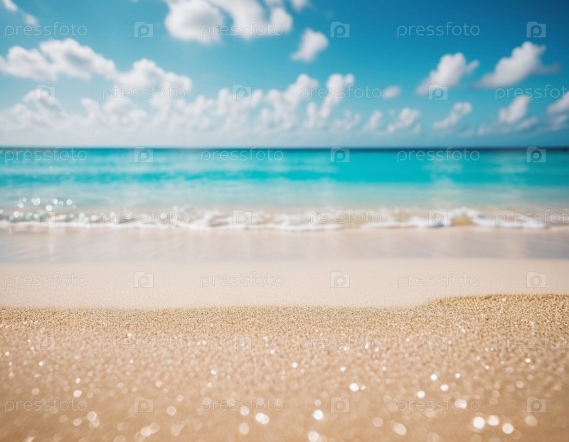Художественная пляжная сцена с мягкими волнами, песчаным берегом. Яркие цвета создают умиротворяющую атмосферу. Сгенерированный ИИ. Концепция путешествия на солнечном пляже. Копировать пространство. Солнечный тропический рай. Фон пляжа