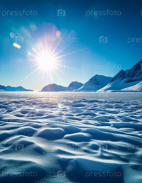 Спокойный арктический пейзаж тундры окутан инеем, когда встает солнце, проливая золотистый свет на ледяную местность и освещая нежные ледяные образования. Генеративный ИИ