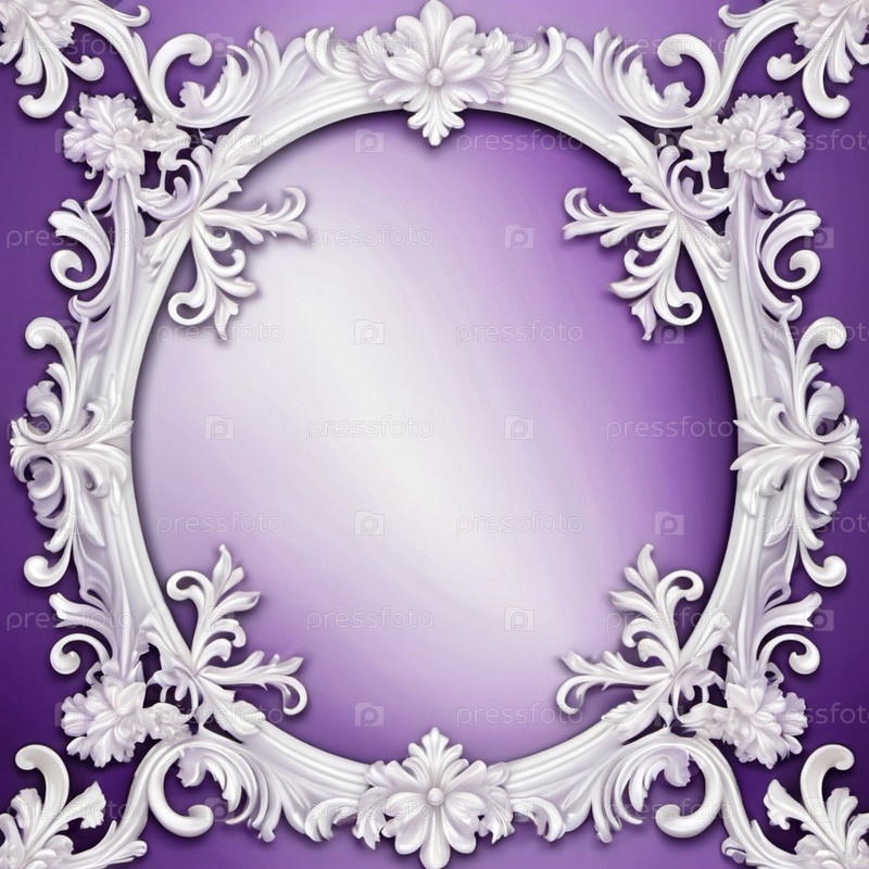 Рамка с сиреневыми цветами в стиле рококо-барокко. Нежные сиреневые цветы, лепестки нежно-пастельного фиолетово-белого цвета. Изображение передает сложные детали цветков, демонстрируя нежную красоту. AI