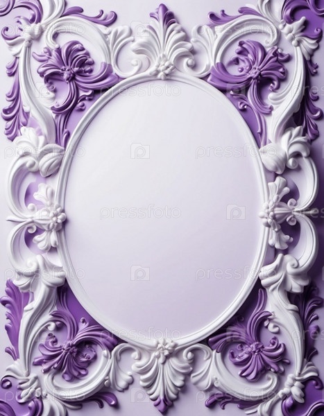 Рамка с сиреневыми цветами в стиле рококо-барокко. Нежные сиреневые цветы, лепестки нежно-пастельного фиолетово-белого цвета. Изображение передает сложные детали цветков, демонстрируя нежную красоту. AI