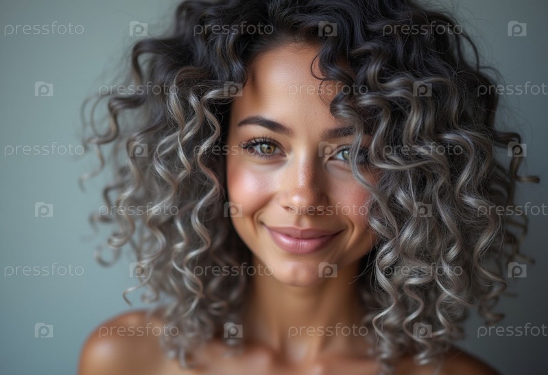 Поразительный крупный план показывает роскошные седые пепельные локоны, сверкающие блеском. Мягкие волны элегантно ниспадают, подчеркивая текстуру и красоту волос в мягком естественном свете. Генеративный ИИ