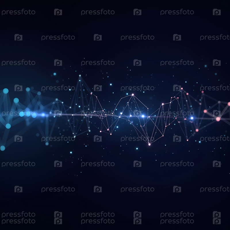Эта графика представляет собой потрясающее цифровое представление звуковых волн, переплетенных с технологическими шаблонами данных на темном фоне. Светящиеся линии пульсируют энергией. Генеративный ИИ
