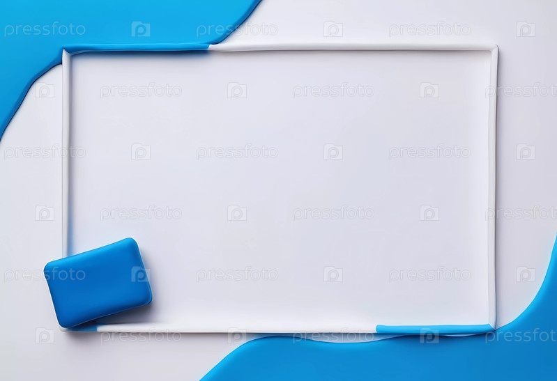 Пустое пространство представляет собой белый фон, дополненный синими абстрактными фигурами, выполненными из пластилина, что создает яркую обстановку для творчества и самовыражения