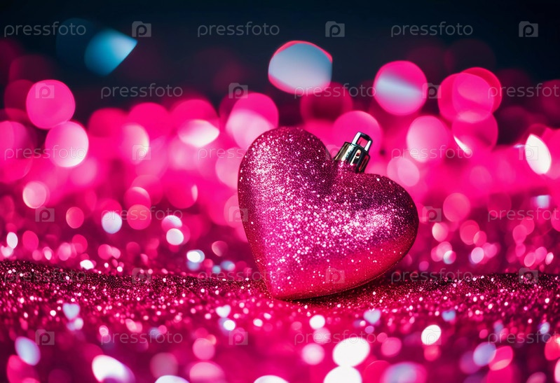 Блестящие розовые сердечки разбросаны по яркому фону, наполненному сверкающими огнями, создавая романтическое настроение для празднеств и торжеств в честь Дня святого Валентина. Генеративный ИИ