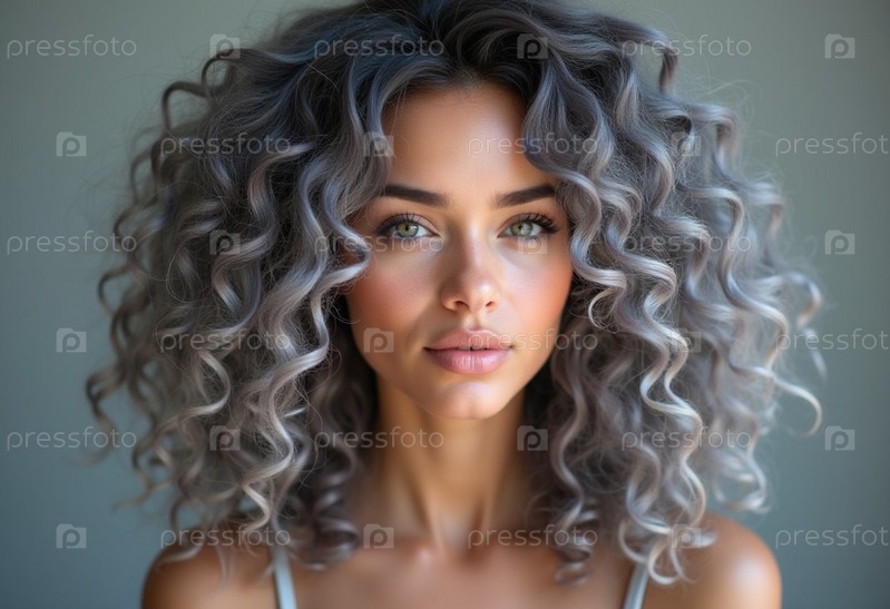 Поразительный крупный план демонстрирует роскошные седые пепельные локоны, сверкающие блеском. Мягкие волны элегантно ниспадают каскадом, подчеркивая текстуру и красоту волос в мягком естественном свете. Генеративный ИИ
