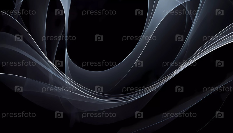 Изящные, закрученные кривые, выходящие из темного фона, подчеркивающие текучесть и динамическое чувство движения, приглашающие к созерцанию. Черный фон с плавными линиями и тенями. Генеративный ИИ