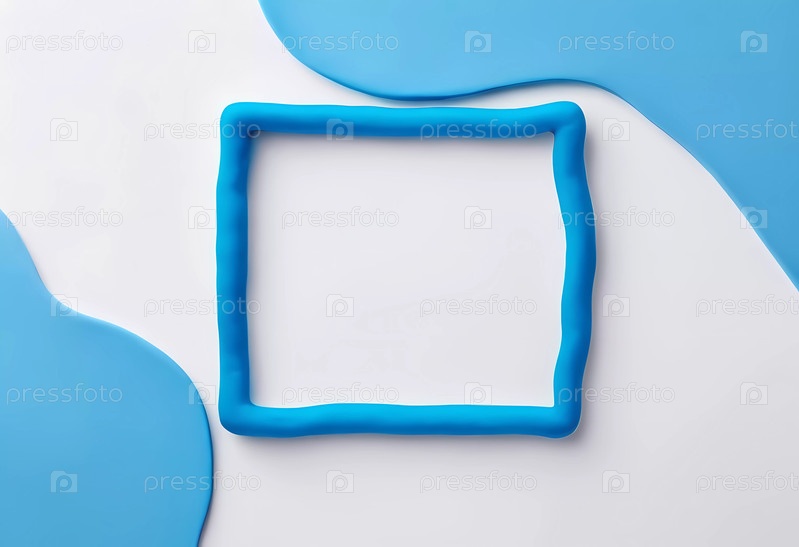 Ярко-голубой пластилин Play Doh очерчивает квадратную форму на контрастном абстрактном фоне, демонстрируя пустое центральное пространство, идеально подходящее для творческих занятий или художественных проектов