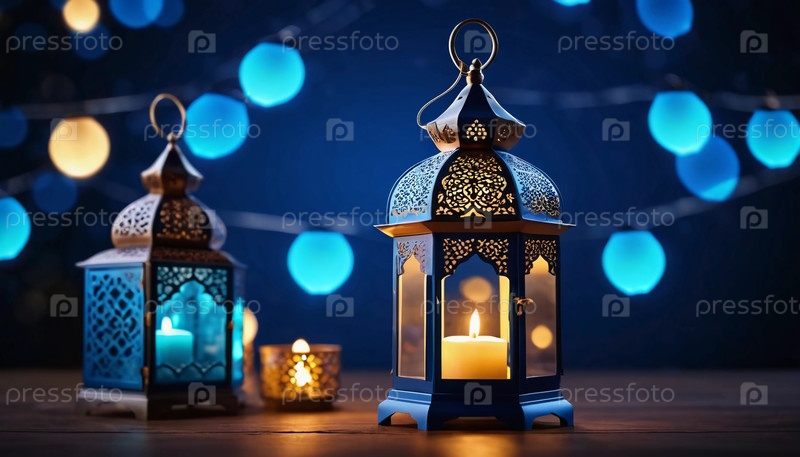 Мягко светящиеся арабские фонари освещают ночь во время Рамадана, приглашая друзей и семью собраться вместе для празднования и размышлений в теплой, праздничной атмосфере. Генеративный ИИ