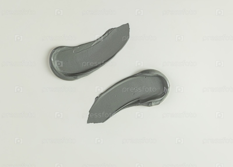 Два красивых мазка косметической текстуры в сером тоне. Нежная гладкая основа косметической глины, маски для лица и тела. вид сверху. макет