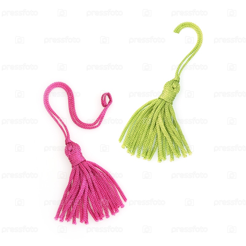 Розовые и зеленые шелковые кисточки, изолированные на белом фоне для создания графических концепций