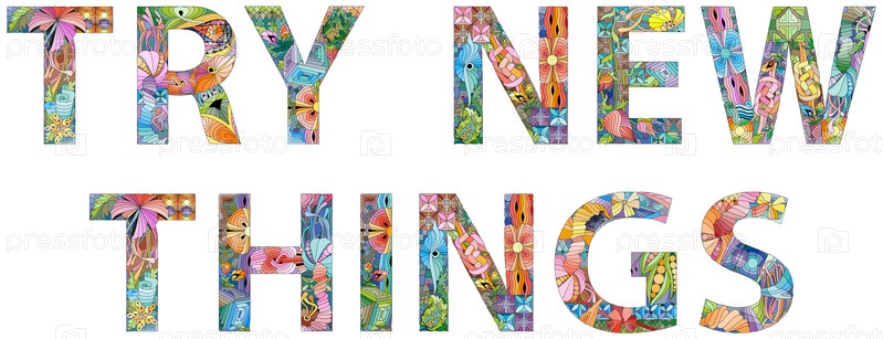 Ручная роспись. Иллюстрационные слова TRY NEW THINGS для дизайна футболок, татуировок и других украшений