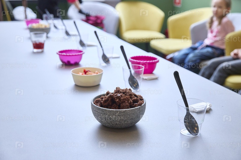Дети готовят вкусный шоколадный десерт вместе