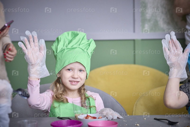 Счастливый ребенок наслаждается кулинарным мастер-классом и выпечкой угощений