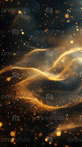 Элегантный абстрактный фон с золотыми частицами пыли и плавными линиями на темном фоне