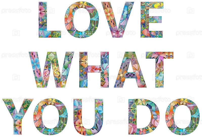 Ручная роспись. Нарисованные от руки слова LOVE WHAT YOU DO для футболки и других украшений