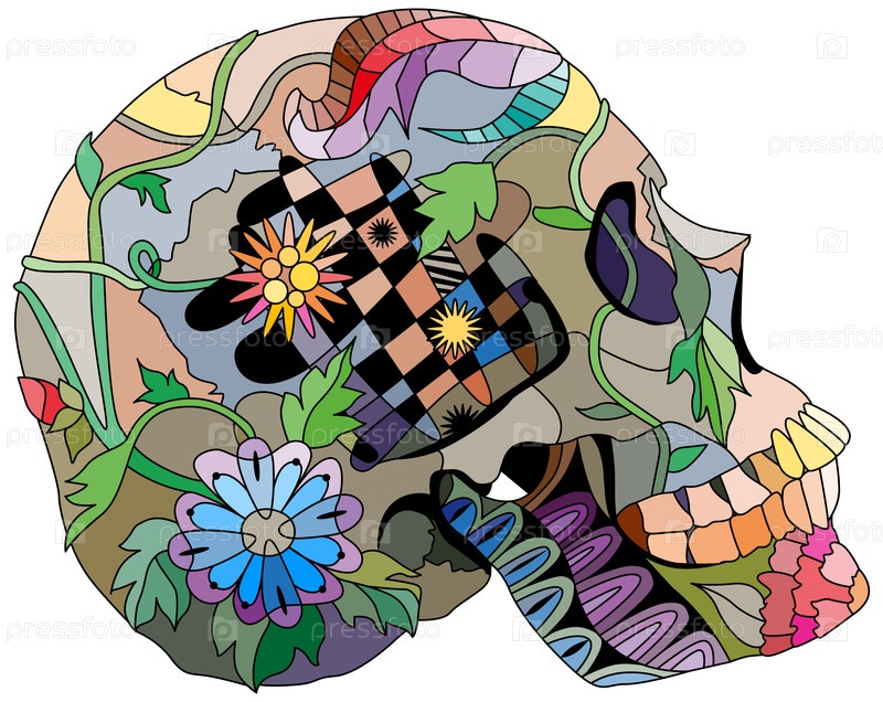 Вид сбоку сахарного черепа с изображением цветочного орнамента