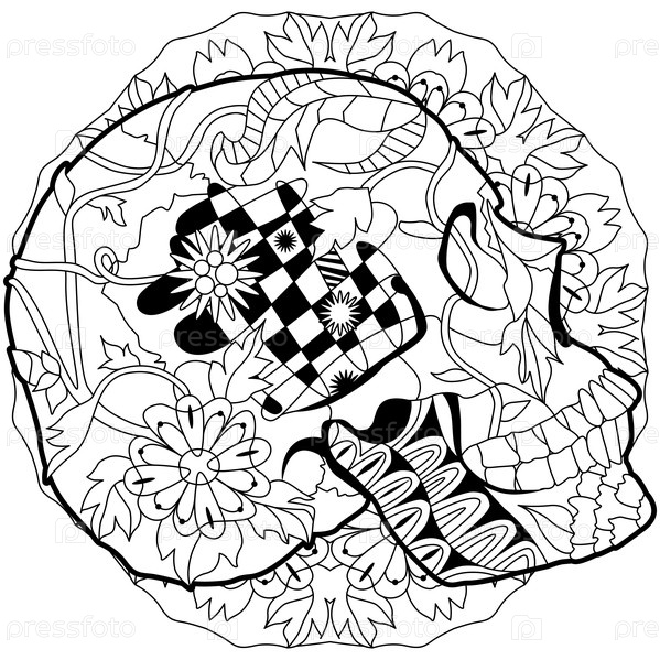 Zentangle стилизованный череп вид сбоку для раскрашивания. Нарисованная вручную декоративная векторная иллюстрация