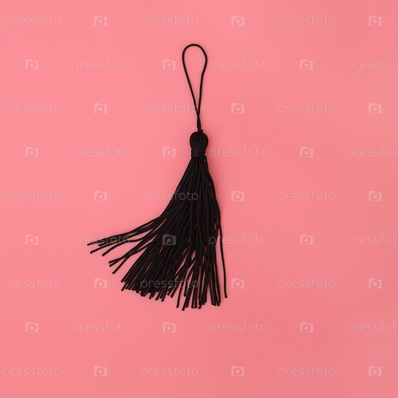 Черная шелковая кисточка, изолированная на коралловом фоне, для создания графических концепций