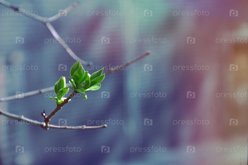 Весна ветка дерева с листьями распускаются красивые листья и почки в солнечный день