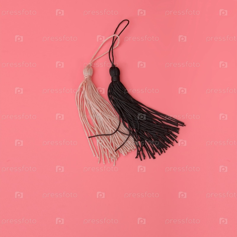 Две розовые шелковые кисточки, изолированные на коралловом фоне для создания графических концепций