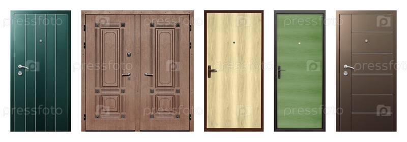 Набор моделей входных металлических дверей, изолированных на белом фоне