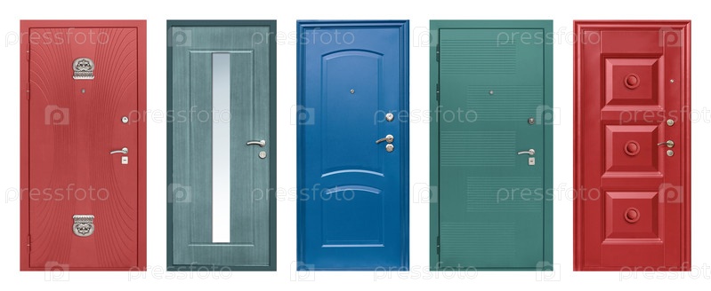 Набор моделей входных металлических дверей, изолированных на белом фоне