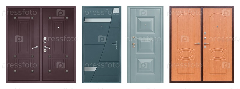 Набор моделей входных металлических дверей, изолированных на белом фоне