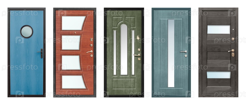 Набор моделей входных металлических дверей, изолированных на белом фоне