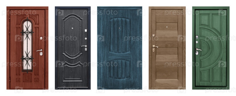 Набор моделей входных металлических дверей, изолированных на белом фоне