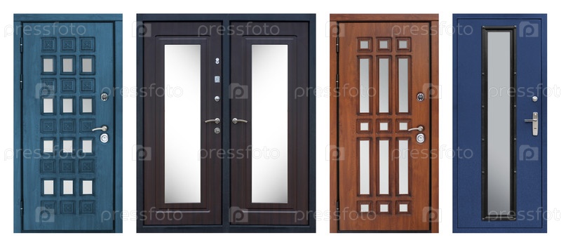 Набор моделей входных металлических дверей, изолированных на белом фоне
