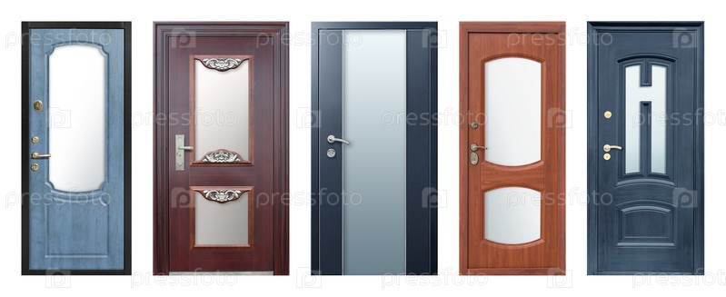 Набор моделей входных металлических дверей, изолированных на белом фоне