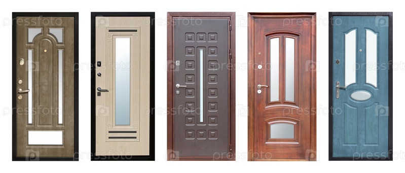 Набор моделей входных металлических дверей, изолированных на белом фоне