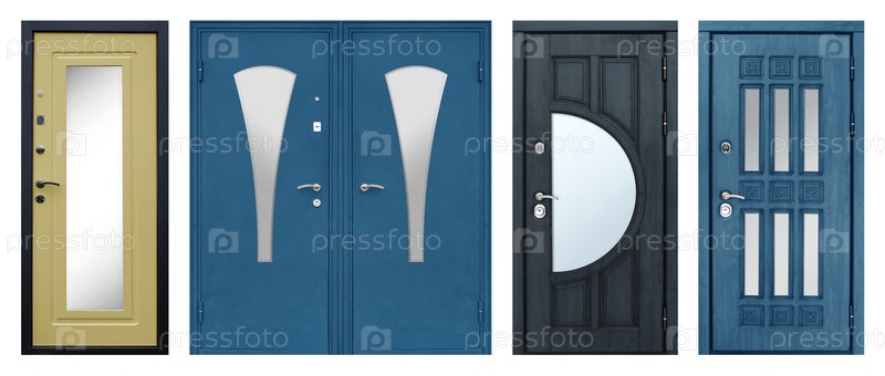 Набор моделей входных металлических дверей, изолированных на белом фоне