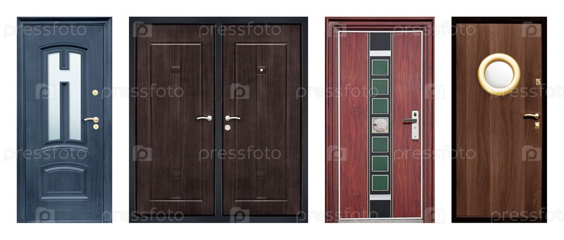 Набор моделей входных металлических дверей, изолированных на белом фоне