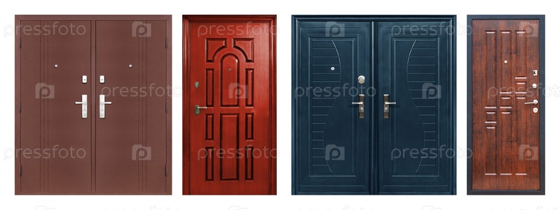 Набор моделей входных металлических дверей, изолированных на белом фоне
