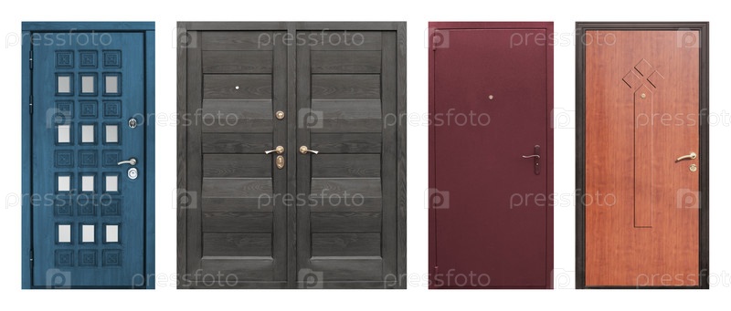 Набор моделей входных металлических дверей, изолированных на белом фоне