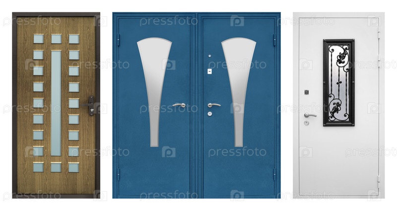 Набор моделей входных металлических дверей, изолированных на белом фоне