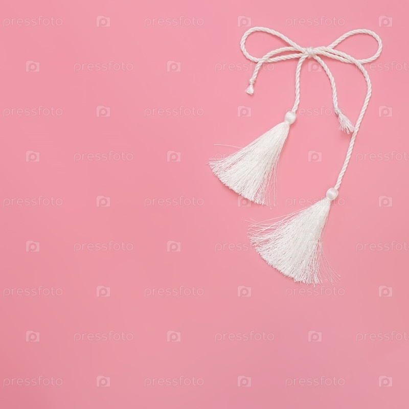 Концептуальный плакат: Белая шелковая кисточка, изолированная на розовом фоне, для создания графических концепций