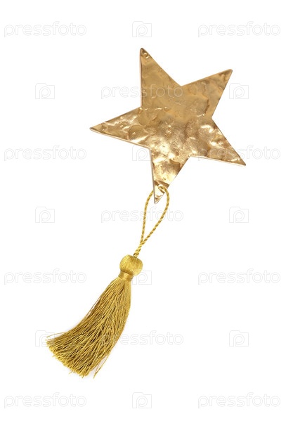 Золотая металлическая звезда изолирована на белом фоне. Элемент дизайна с обтравочным контуром